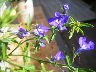 I needed an attractive eye-catching plant in the center, something on the taller side. That needed to be surrounding by bright, shorter flowers, to ‘fill in’ the pot. Finally, some vines or trailing blooms, spillers, to balance out the whole deal. Here's a pretty bit of lobelia for my first basket.