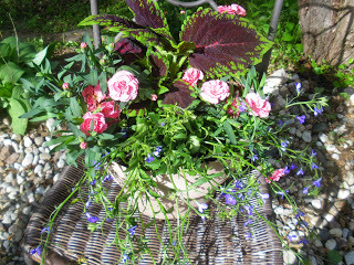 Time is short this week: something to do with writing books so that people who enjoy the book collector mysteries will have a new one in the works. But I found enough time to go hunting for plants at the garden center of our grocery store in the village. The rule of thumb for baskets is: thriller, filler, spiller. Was I the last person in the world to learn this?