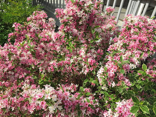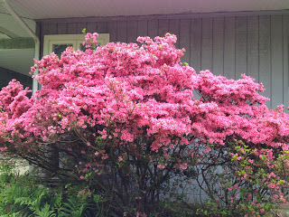 Meanwhile----enjoy the above photo of another azalea bush along the side porch of the river house. This is the first time I'd seen the pink and white azalea bush bloom. :)