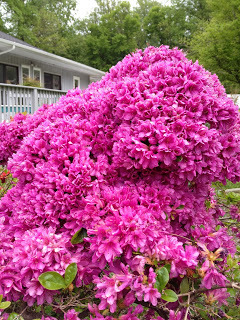 Azaleas are blooming everywhere. The salmon pink and white bushes beside the house are in full bloom. The combo pink and white are coming. Flowering pink dogwoods have already peaked. Don't you just LOVE spring? What's blooming where you are?