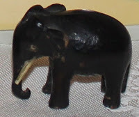 The little elephant has a broken tusk. (He's showing his "good" side in the picture at right.) The person at that sale wanted 50 cents. I said, "But he's wounded." Okay, then a quarter. (Hey, I'm into saving elephants, whether they are alive, or tiny orphans like that little guy. I have a whole herd of wounded orphaned elephants. I love them. (Somebody has to.)