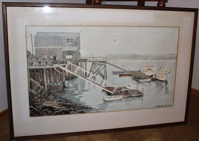 And I bought my very first painting. It's an original watercolor (I just love watercolors). I'm in the process of redecorating my enclosed porch, and I'm doing it in BEACH style, so this picture should work out nicely. I also bought a rug for the porch, and a heater for my office.