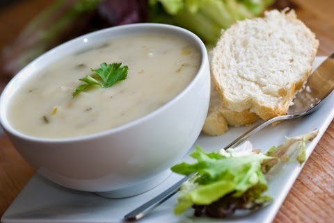 If you prefer a smooth soup, mash the potatoes in the pan, or puree in a blender (I use an immersion mixer). Just before serving, pour the milk/cream into the soup; stir well and heat through. Serve with crusty bread and it's a meal!