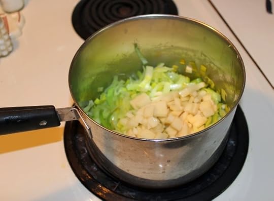 I made a batch of leek-and-potato soup for my Mom just this week. (It was featured in Booktown Mystery #3, Bookplate Special.) My brother and I go to the Rochester Public Market a lot and that's where I get my leeks. The recipe is easy.
