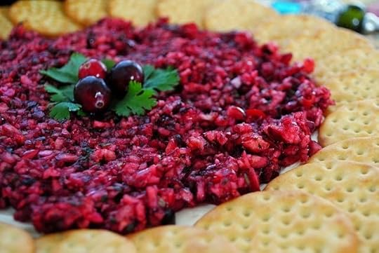 I am talking about the Thanksgiving feast, of course--which was wonderful. The vegetarian daughter and son-in-law made a lentil Shepherd's Pie, a green bean casserole, vegetarian gravy and fresh cranberry relish. For the rest of us there