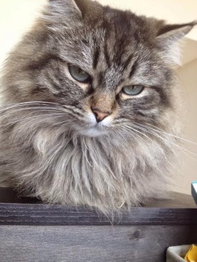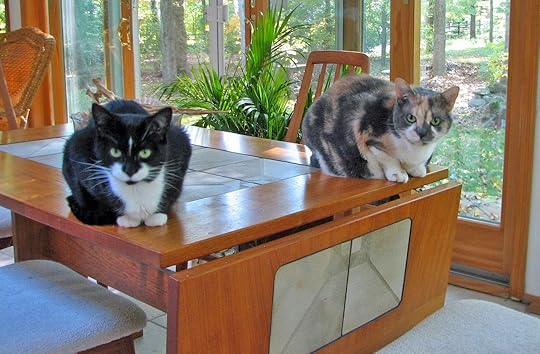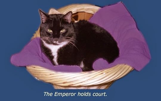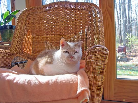 neighborhood where my critique group met in Texas. He has some BIG health issues. He was rescued, by the way, because he had been declawed, neutered and was infested with fleas--and probably abandoned. My friend found him, I took him and my daughter and son-in-law fell in love with him. They adore him and he has quite the personality. Definitely a top cat.