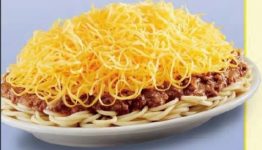Cincy also has Skyline Chili not to be confused with Texas chili. This is spaghetti topped with chili sauce (special secret chili sauce to be sure) and topped with shredded cheese. This is affectionately called a three-way and an acquired taste. It is a Cincy tradition to take your offspring to Skyline for his or her first three-way and get a pic of the occasion for the family album.