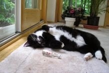 Or sometimes the warm sun is just so relaxing, a cat has to drift off to dreamland. I call this Siggy's "Wasting away in Margaritaville" photo. Don't worry, no alcohol was consumed for this picture.