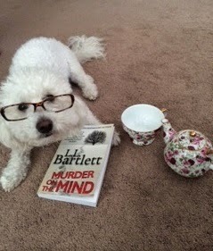 Meanwhile, Margie B's dog Max likes reading my edgier Jeff Resnick series while enjoying a cup of tea. Doesn't he look scholarly? Kind of like Mr. Peabody! (BTW, that's the first in the series, Murder on The Mind. If you've got an ereader, it's free for all e formats.)