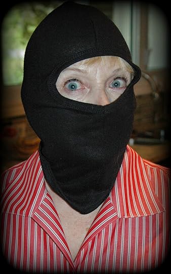 So those are my two choices. Victoria did a good job with soft light, a filter and a bit of magic. The balaclava covers a multitude of flaws and you didn't get to see the rejects. Would you like to vote on the one you think I should use? And yes, none of the above is an acceptable answer. By the way, Victoria and I also had a great time taking our new shots as Victoria Abbott - our pen name for our collaboration on the book collector mysteries. We hope to share those with you as we prepare for the release of The Wolfe Widow.