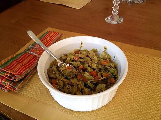 I don't cook too often anymore. After my husband died, I lost my appetite for it, so to speak. But one can't survive on restaurant food forever, so eventually I returned to my kitchen. Now when I cook, I make enough for five meals. Cook once, eat all week is my motto.