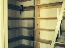 Lighting and paint and interior doors are almost finished. My husband and his good friend built all the closet shelves and isn't my pantry awesome?