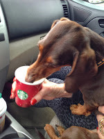 Given Oscar's story, I thought I'd share these cute photos with all of you. Here, Oscar is enjoying a Starbuck's treat, a Doggie Whip: