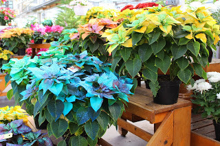 One of my favorite annual traditions is a two hour trek to Green Bay to take my mom to Schroeder's Flowerland to pick out a pointsettia. It took a long time to make our selections. Can you see why? In the end, we went traditional with a red/rose combination. But aren't these beautiful?