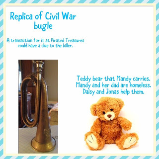 Karen collects teddy bears, and here's one that Mandy carries in the latest release. I always think of warmth and comfort for the soul when I see a teddy bear and Karen's books are full of heart. The bugle in the photo also features in the plot and a transaction for it could provide a clue to the killer.