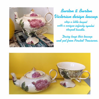 Daisy buys this Victorian designed tea pot from Pirated Treasures in the book. (I want to go shopping with Daisy, don't you?)