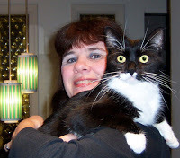 Unfortunately, George didn't work out. He was a runt, but he was also a bully. He attacked the other cats, and even I was bitten (and my thumb started to turn black), but when he viciously attacked our Betsy, that was the last straw. He had to go. (And believe me, it was a tearful decision. We'd never had a cat failure.) Luckily, Mr. L's cousin's best friend was looking for a cat. George went to live in Buffalo and the minute he saw Cindy, it was love at first sight. He's still with her and he has not only tolerated her other cats, but been best buddies. Go figure. (We learned the hard way that five cats strains the system.)