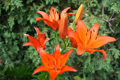 This is a common day lily, like you see by the side of the road--and that's exactly where its forbearers came from. We pulled out the old garden at my family's summer garden, but I couldn't bear to throw away just everything, so I brought home a number of them and put them around the side of our deck, where nothing wanted to grow. I figured if they could survive along the side of roads, they could survive around my deck. They have been fruitful and have done a great job of multiplying.