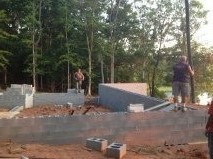First the footers that support the hole in the ground had to be redone three times because of weather. Then, the first blocks of the foundation were put in and more rain hit. We had to wait. They finally got them in and were