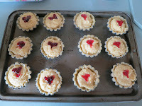 1. In mixer with paddle attachment, cream butter and icing sugar.2. Add egg and almond extract.3. Add flour and ground almonds. Mix until creamy. 4. Place a teaspoon of jam in the bottom of the tart shell, or four cherry halves.