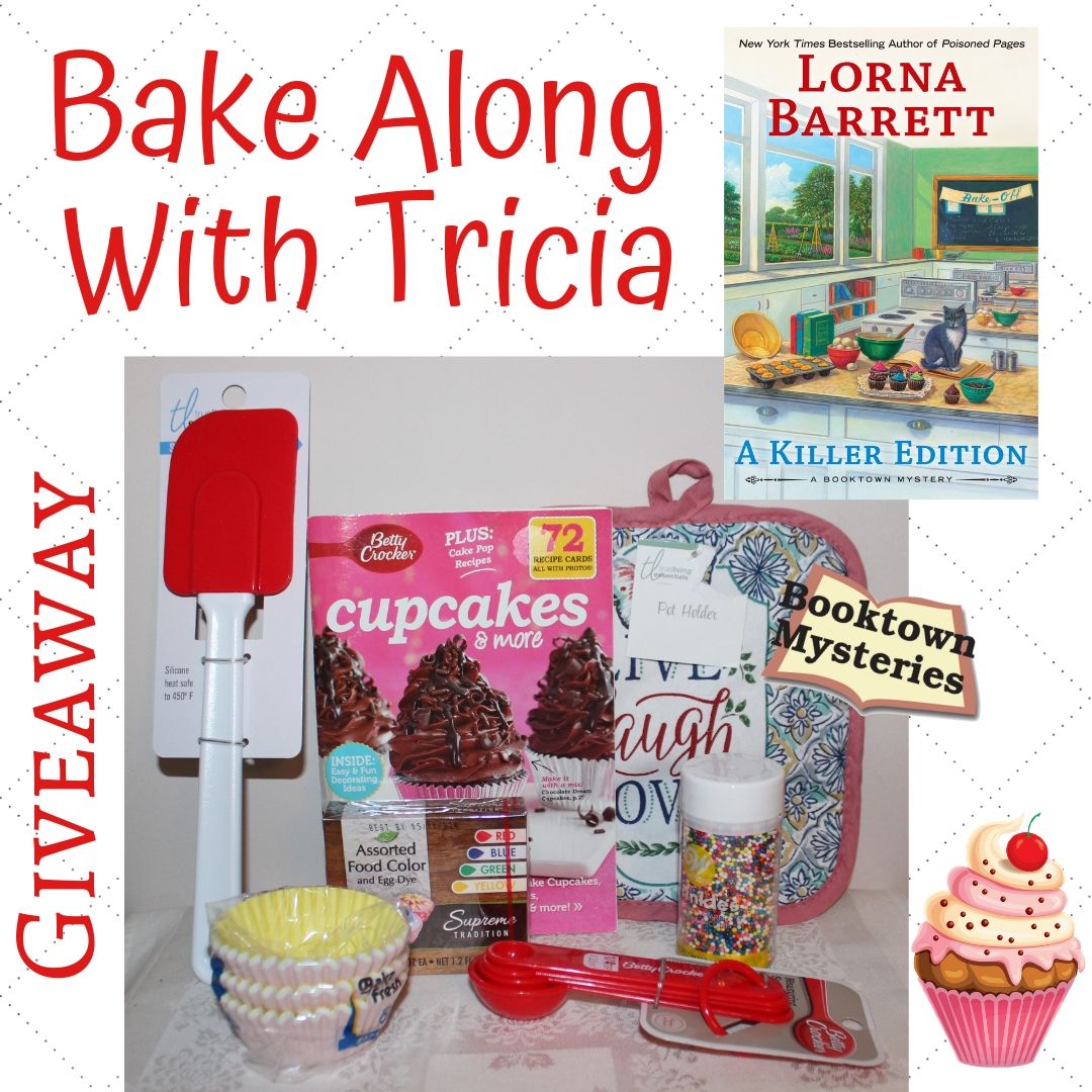Woo-hoo! To celebrate the publication of A KILLER EDITION, I’m having a fun giveaway. Tricia and Angelica are cut-throat opponents in the Great Booktown Bake-Off and they’re making CUPCAKES. Enter the giveaway to get these great items.