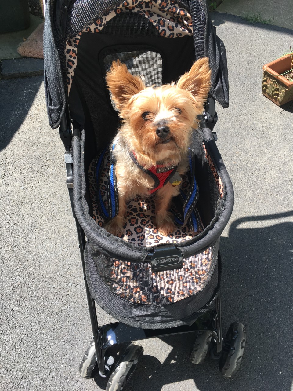 Hence, the stroller! I bought it on amazon and am really happy with it. I can walk Yogi twice a day for about 1.5 miles each time.