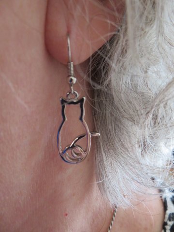Having five inside cats, it is a given that you will be wearing cat hair if you don't remove it. So my theory is--if I'm going to wear my cats anyway, I might as well do it in style. Many of my daytime outfits feature cats, whether it is a simple necklace and earrings or a slogan on a T-shirt. Often these items capture the attention of those I'm around and they make great conversation starters. It doesn't take long to determine if you are speaking to a cat lover. And they are usually more than willing to share their pet stories with you.