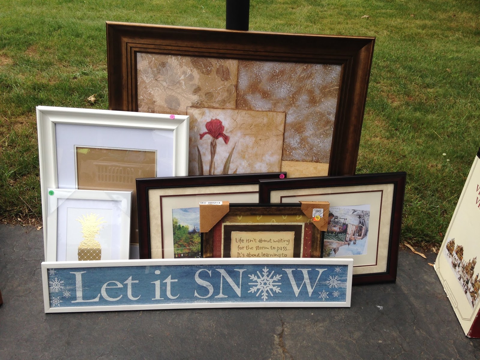 My neighbor and I try to walk at least three days a week. Everybody needs exercise, right? On Tuesday, she mentioned that she was going to have a yard sale Thursday and Friday. Mr. L and I had plans for Friday, but I asked her if she minded if I brought some of my stuff down and tried to sell it. "Sure!"I've had boxes of stuff sitting in my garage for two years. That was the last time I attempted a yard sale. (It got rained out.) While Mr. L is fine about going to yard sales, he's not keen on hosting them. He says we never make any money, and it's a lot of hard work and time wasted.