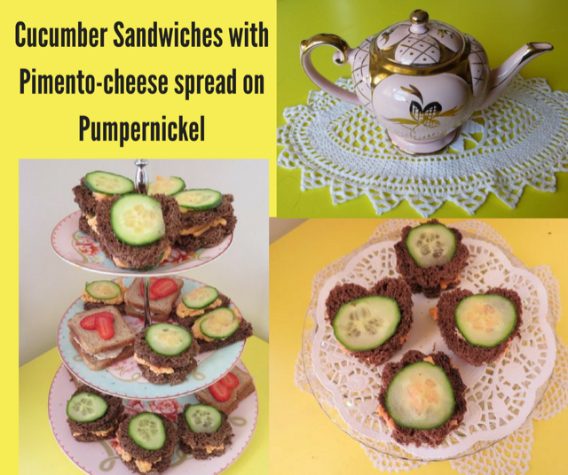 This morning I was walking through the garden and I saw the first cucumber on the vines. Although tiny, hopefully it and many more will soon be ready to harvest. I immediately thought of my recent release, MURDER WITH CUCUMBER SANDWICHES, the third book in my Daisy's Tea Garden cozy mystery series. Daisy conjures up a delicious recipe for cucumber sandwiches which features a pimento-cheese spread on pumpernickel bread and topped with a fresh cucumber slice. The recipe for the spread can be found in the back of the mystery. It would be a refreshing addition to a Fourth of July picnic. I have included the recipe below for your holiday enjoyment.