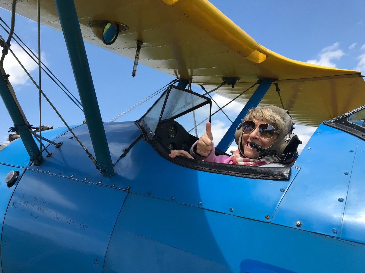 Okay, I know you’ve probably flown in a jet but this is entirely different. First off no flight attendant is yammering at you about safety and you actually get to think about the flying aspect of going up, up, up.Things get smaller and your world get bigger. It is the most amazing thing ever!!! It is what flying is supposed to be. Flying jets gets you where you need to be. Flying a biplane is becoming one with the sky and the pure joy of not being earth-bound.