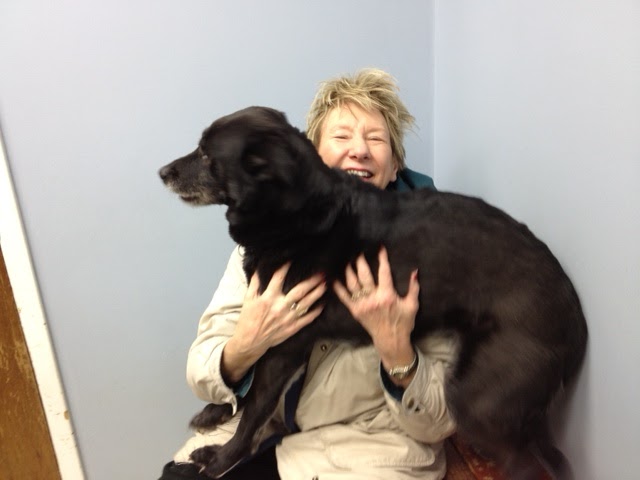 by Maggie SeftonThis photo was taken a few years ago at the Vet's office. But Katy looks about the same today. Of course, she does have a lot more grey hair around her face, now. And my hair doesn't look as tousled---I hope. :)