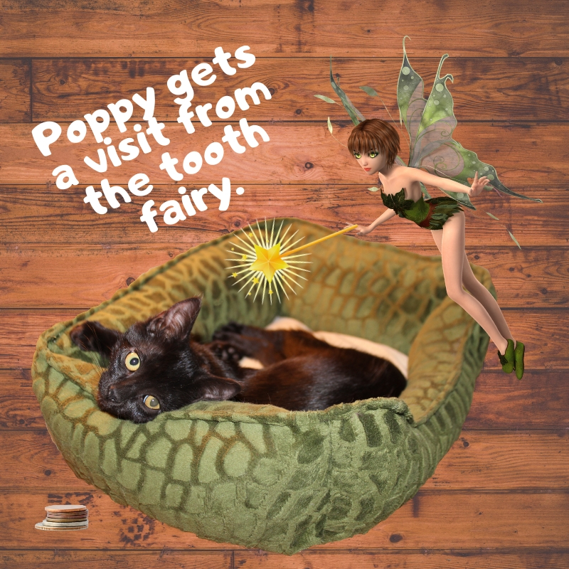And just as good, the vet didn't charge us for our little emergency. (The woman is a saint and a brilliant kitty surgeon.) She said all Poppy needed was a visit from the tooth fairy.