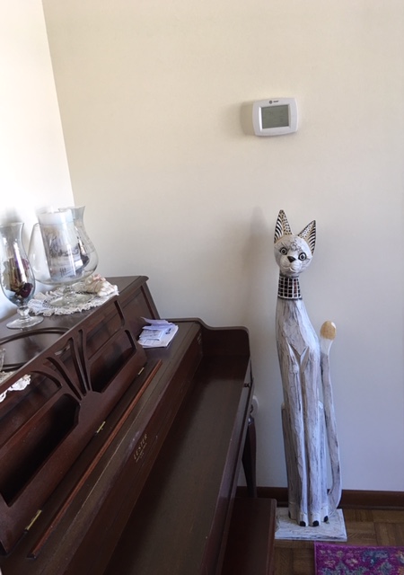 Other than Freya having specks of Summer White paint on her ruff, all went surprisingly well. Now Zander sits on the table and is waiting for the new light to be installed. I hope he approves!