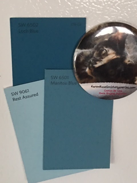 We are in the midst of removing wallpaper and preparing the bathroom walls for a coat of paint. While removing the old wallpaper can be tedious and time-consuming, that is a breeze compared to picking the right color of paint. That process is as challenging as developing the right character for one of my mysteries or romances. All the aspects of a character's personality must fit together to maximize the role they play in the story. Similarly, all the tints and tones of a color scheme must work together to present a cohesive and appealing decor.