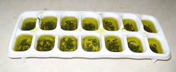 One of my friends freezes her herbs in olive oil, she makes a lot of Italian sauces and this works well for her. I usually stick to water, but I may try one tray of olive oil.