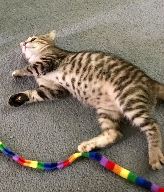 My friends are home now. I asked if Dottie and Baler were behaving. I heard back that Dottie is more cuddly since we were there. Animals, like humans, just want to be fed...and loved. One can lead to the other. And if they learn to accept affection, they will give it back. Right now one of our "kittens" is sitting on my desk while I write this, watching the kitten photos! Every once in a while, he puts his paw on my arm--his version of a hug. We'll probably nap together this afternoon.