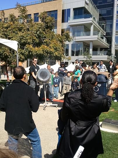 On Saturday I took the three oldest girls to the San Diego Science Expo at Petco Park. Throngs of people, dozens of nifty hands-on exhibits and activities, a mental overload of Very Cool Stuff. My favorite part was when we'd made it about halfway around the circuit inside the stadium and came to a large ring of booths in a park just outside, and Beanie and Jane were practically cheering with enthusiasm: Look at the guy making smoke rings with that gizmo! Look at the motorized robot-car built out of Legos!