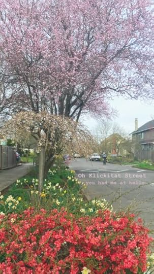 Portland puts on spring the way a five-year-old wakes up from slumber: suddenly, with energy, from zero to sixty. Today’s a chilly, rainy day but we’ve had several days of blue sky, warm sun, and pink fireworks in all the trees. I walked a mile along Klickitat Street yesterday and I had to stop myself from skipping like a Disney princess.