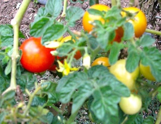 Five winters here. I'm reading all your posts and Facebook updates and tweets about the snow, snow, snow, and it's almost surreal. I have this cherry tomato plant leftover from last summer, baked brown and crispy by the October heat, that sprang back to life after our freakish December rains. It is loaded with fruit now, green arms bent low to the ground, hung all over with orange-red globes. A southern California Christmas tree of sorts. Huck and Rilla don't even like tomatoes—juice? seeds? are you trying to poison them??—but they can't wait to run outside at lunchtime and fill a bowl for me.