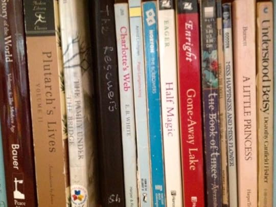 Ridiculous, I know. But the idea tickles my fancy and I go to the bookcase nearest the bed, just to see. Top left corner, the obvious place to start. Oh but I can’t start there—it’s the Norton Anthologies, the five we kept for homeschooling purposes. You can’t start with Norton Anthologies! Can you?