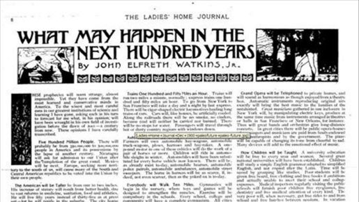 Highlights from a 1900 Ladies Home Journal article with predictions of what life would be like a hundred years later: