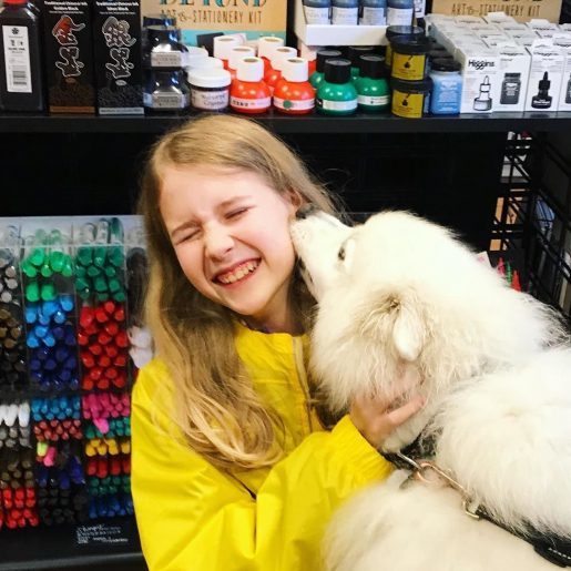 Rilla, who has taken several of Lisa’s Creativebug classes* with me, was so excited to meet her. Wish I’d gotten a better picture! She also made a furry friend. Equal levels of excitement, I would say.