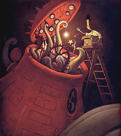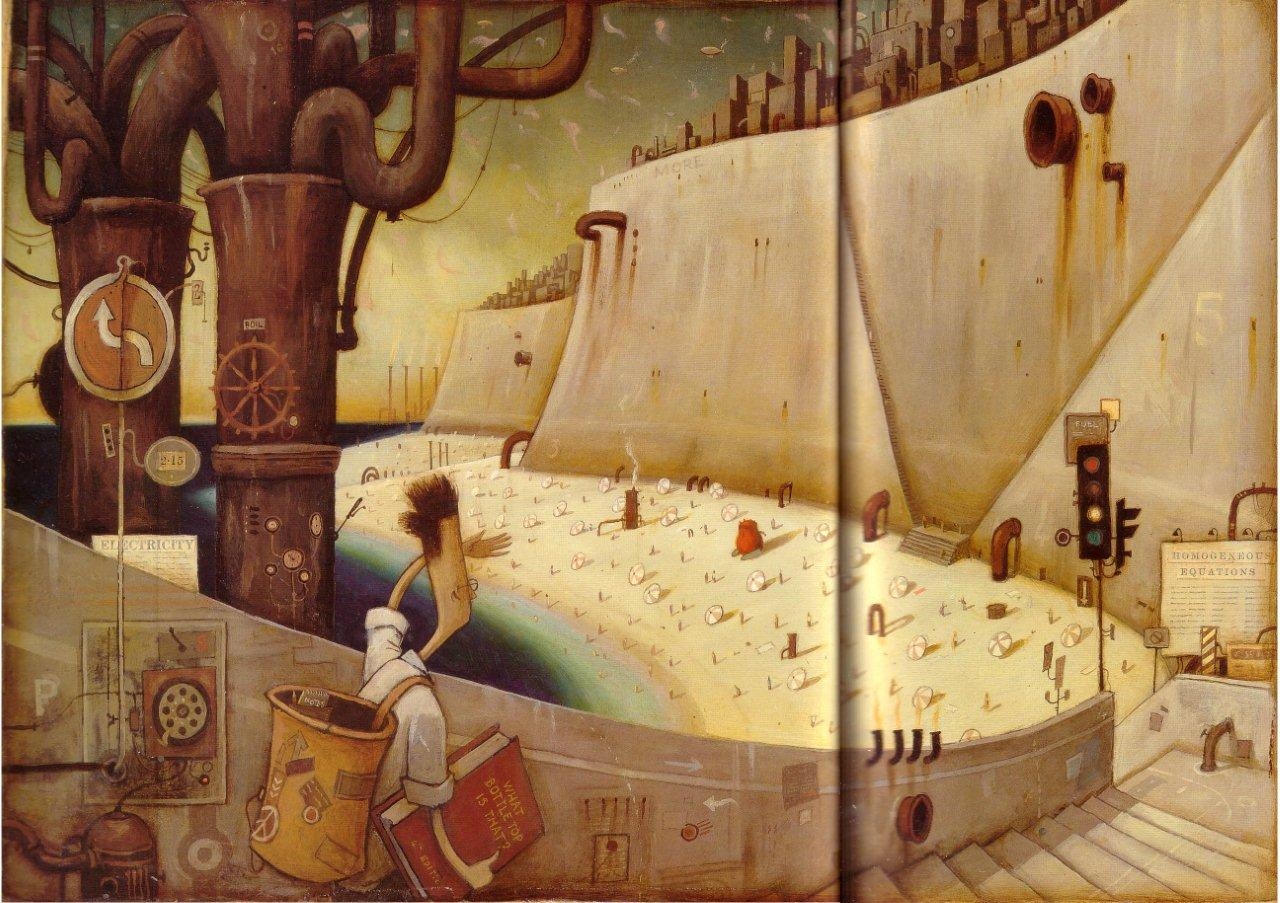 Today's Book Review is The Lost Thing by Shaun Tan. I have a confession to make. I skipped to the end half way through the book because I couldn't wait to find out what happened. Then I went back to the beginning and read it again, looking for different things. I couldn't read this book from front to back, it made me want to jump to different pages like I was trying to find the intangible essence that could save the 'thing' and give it a proper home, but I couldn't. And I wasn't meant to. You finish this book and feel yourself like a bit of a lost thing. Shaun Tan has an amazing capacity to impart emotion through his illustrated works. I am always a bit scared when I pick up a new one of his books that I haven't read before because I know it's going to leave a scar.