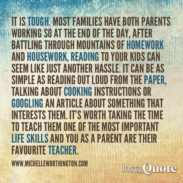 It is important they see that you enjoy to read, not only to them, but for work and for your own enjoyment. If you don't enjoy reading your children bedtime stories, I don't suggest you do it. If you love reading bedtime stories to your children, that's fabulous. Kids today are amazing imitators. Kids are much more practical and visual than my generation. They are less likely to try something they see has no intrinsic value to them. We need to be developing ways of introducing books to kids that will suit their new world and we need to start from when they are very young. We need to start thinking about the skills we are passing on to a new generation and make sure they are suited to the future world that awaits them. It's hard, but it's not impossible.Teach your kids the skill of reading when they are young because it's a life tool they will use everyday of their lives. But if it's not at bedtime, don't stress. Talk soonx Michelle www.michelleworthington.com