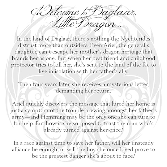 He looked at my wings and nodded, understanding in his pale eyes. “Welcome to Daglaar, mikros drakos.”