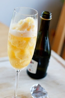 Mimosa Sorbet ~ Pour Champagne Over Orange Sorbet.