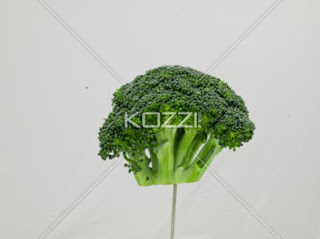 A close-up image of fresh green broccoli on a stick isolated on a gray background