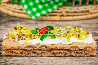 Whole Grain Crisp Bread With Sprouts On Wooden Table