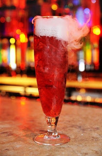 Smoking Zombie – Skyy Vodka, Seagram'S Gin, Bacardi Rum, Triple Sec And Sour Mix With Dry Ice For A Smoky Effect, Topped With A Float Of Chambord Liqueur