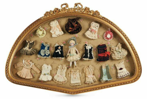 Antique French bisque “mignionette” doll with miniature wardrobe (from Theriault’s auction house).